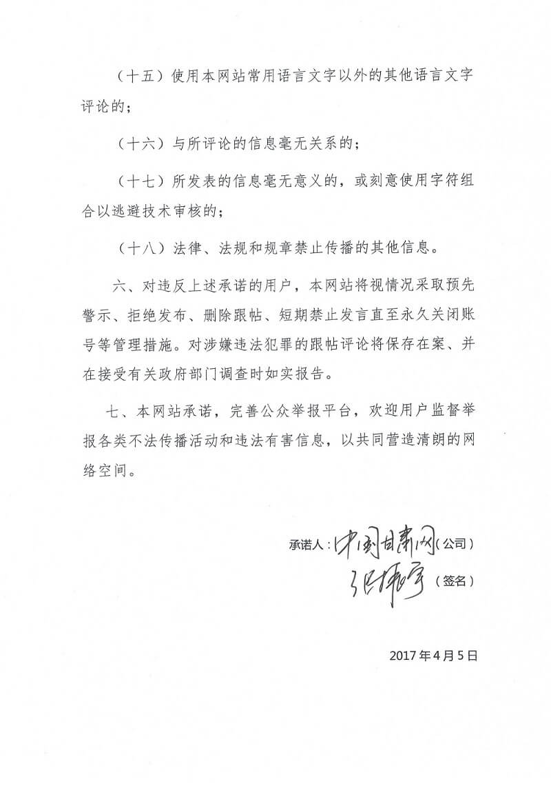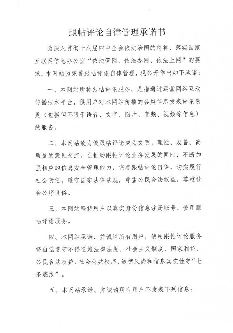 》 跟帖評(píng)論自律管理承諾書(shū)