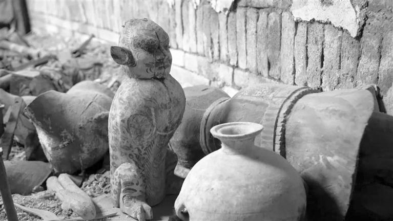 甬道及墓室內(nèi)隨葬品眾多,有彩繪陶、漆木、石、銅、鐵、金銀器及革制和絲麻織品等,共計(jì)220余件組。從發(fā)掘現(xiàn)場來看,這座墓葬保存非常完整,沒有被盜和攪擾的痕跡。
