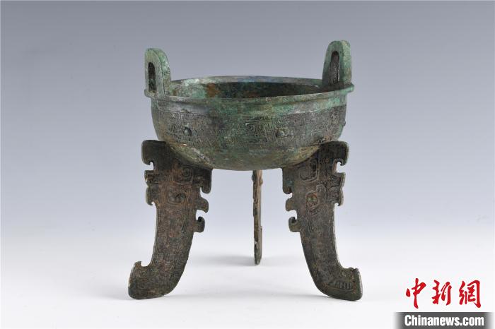 同時,酒務頭墓地大墓的形制、青銅禮器組合和器型紋飾風格等表現(xiàn)出其與商文化演進過程的同一性與復雜性。墓地不僅出土了成套系的樂器,如鼓、鈴、鐃等,還出土了種類豐富、造型各異的青銅鼎,其中不乏一些形體較大的重器,凸顯其禮器功能。其中,子匿圓鼎表面飾獸面紋、雷紋,足根部飾獸面、凸弦紋,鼎內(nèi)壁鑄有“子匿”銘文,應為族徽或人名。這種深腹、圜底、三足鼎的形制以及紋飾是商代晚期青銅鼎的典型樣式。