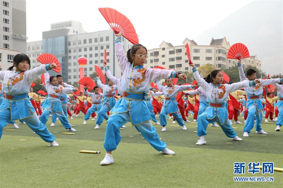 11月4日,蘭州市寧興小學學生在活動現(xiàn)場表演武術(shù)操。新華社記者 張智敏 攝