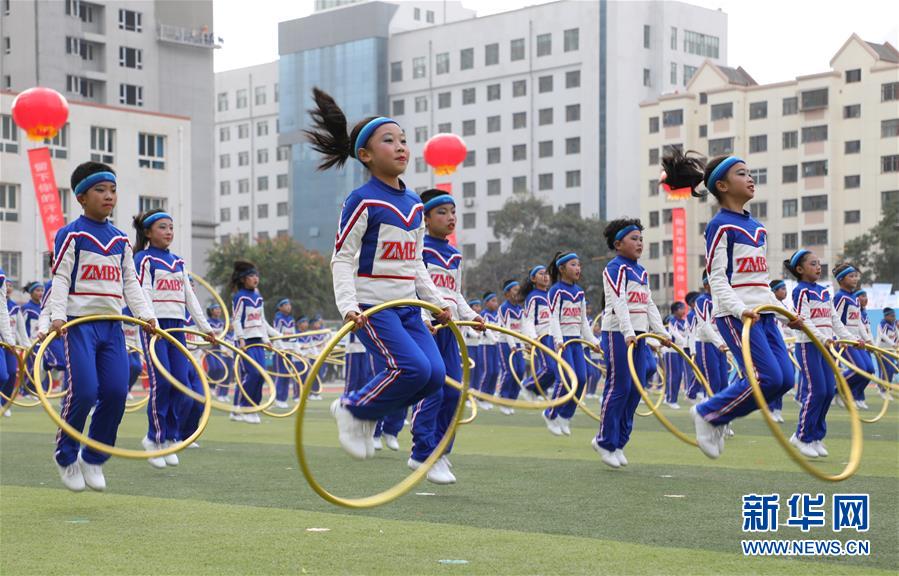 11月4日,蘭州市鹽場堡小學學生在活動現(xiàn)場展示呼啦圈操。新華社記者 張智敏 攝