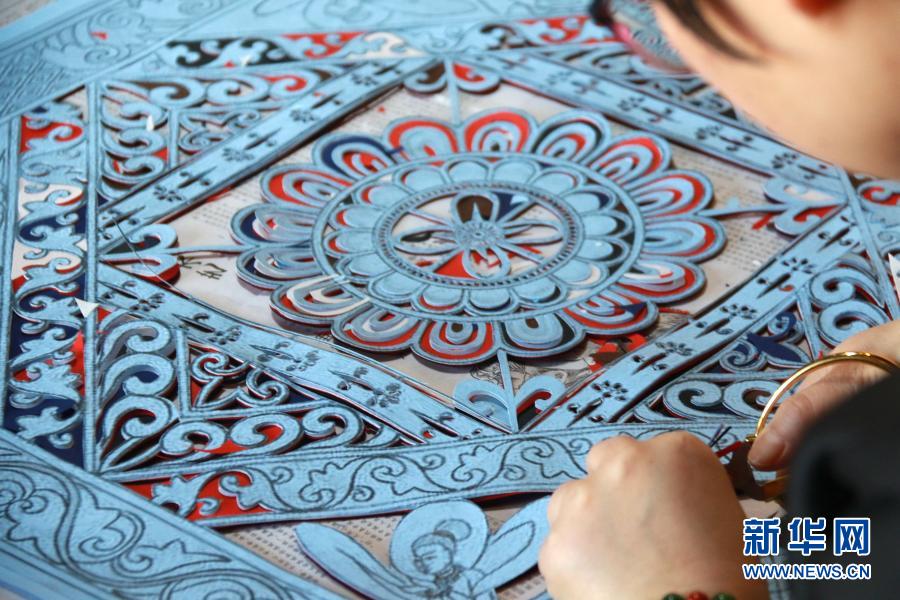 在甘肅敦煌小鎮(zhèn)鳴沙書院,學(xué)員在“敦煌剪紙”酒泉市級非物質(zhì)文化遺產(chǎn)代表性傳承人莊生娟的工作室內(nèi)剪紙(2020年12月31日攝)。新華社發(fā)(張曉亮 攝)