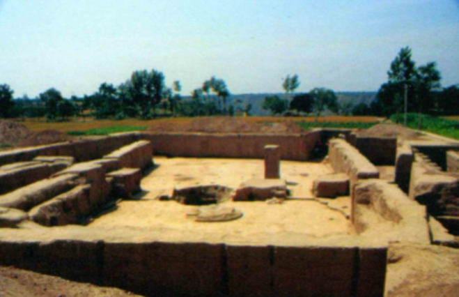 考古調(diào)查初步判斷南佐遺址面積約600萬平方米,年代距今5200年至4600年。遺址核心區(qū)由9座大型夯土臺圍合,面積約30萬平方米,緊鄰夯土臺外側(cè)發(fā)現(xiàn)2道環(huán)壕,核心區(qū)東、南、北三面約1000米處還發(fā)現(xiàn)外環(huán)壕遺跡,但目前尚不能確認(rèn)為封閉的環(huán)壕。2021年考古調(diào)查初步了解1號夯土臺殘存面積約880平方米、殘高2-3米。核心區(qū)北部發(fā)現(xiàn)大型建筑基址、聯(lián)排房屋等重要遺跡,其中大型建筑F1包括前廳、后堂,僅室內(nèi)面積已達(dá)630平方米,墻壁、地面均為多層白灰面;F2出土白色堆紋陶、白衣陶、白陶、黑陶、朱砂彩繪陶,大型彩陶罐、帶塞蓋喇叭口平底彩陶瓶以及大量水稻遺存,顯示了較高的社會發(fā)展水平。