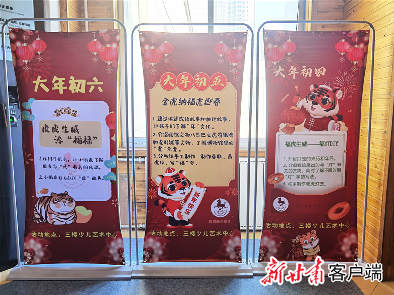 “后續(xù),還有大年初三的‘靈虎送福——虎紙漿畫DIY ’活動、大年初四的‘福虎生威——福燈DIY ’活動、大年初五的‘金虎納福虎迎春’活動、大年初六的‘虎虎生威添‘福祿’活動’。”省博物館社會教育部主任盧冬介紹,每場活動面向約30名小朋友開展,經(jīng)過前期策劃準(zhǔn)備,除了省博物館社教部的10余名工作人員,給孩子們普及有關(guān)虎和北京冬奧會的知識,還有來自西北師范大學(xué)、蘭州二十七中等校的學(xué)生志愿者,指導(dǎo)輔助孩子們玩游戲、做手工。