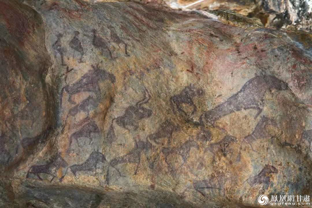 新疆阿爾泰巖畫刻畫的人類最早滑雪圖案,考古學家認為其繪制年代可追溯到1萬年至3萬年前。作者供圖