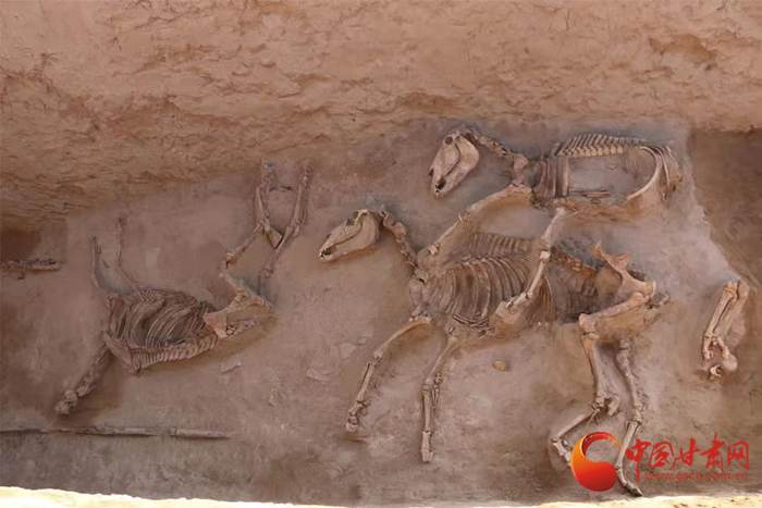 2021年,考古項(xiàng)目組對新發(fā)現(xiàn)的天??h祁連鎮(zhèn)長嶺-馬場灘區(qū)3座墓葬進(jìn)行了考古發(fā)掘,發(fā)掘面積600平方米。3座墓葬均為帶斜坡墓道的單室磚室墓,其中馬場灘M1還附帶一側(cè)室,甚為獨(dú)特。墓道內(nèi)均殉有整馬,1-3匹不等,墓室均遭盜掘,頂部坍塌,北側(cè)設(shè)磚砌棺床,共出土各類文物290余件。