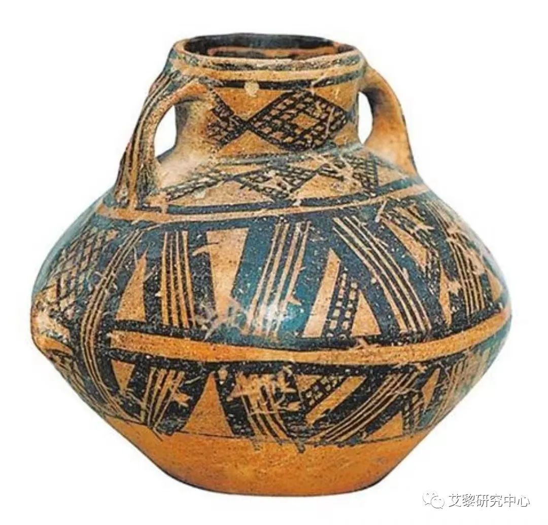 深入考察“四壩文化”遺址的布局,會發(fā)現(xiàn)一個很有趣的現(xiàn)象:幾乎所有的遺址都與水源毗鄰。山丹四壩灘位于古弱水南岸和川口河?xùn)|岸之間開闊平臺之上,三面環(huán)水;山丹山羊堡灘和壕北灘遺址都在古山丹河南岸,臨水而居;民樂東灰山位于古弱水支流童子壩河的古河道之上,地形平坦,水源充足;酒泉干骨崖、玉門火燒溝都位于在古疏勒河邊的臺地上……而“四壩文化”遺址出土的陶器多有類似耕地的平行波折紋、水域波浪紋、月牙形的魚頭紋和網(wǎng)狀紋,這些圖形紋飾,自然來源于先民們的生活場景,也是他們耕種土地和打魚狩獵的實物見證。