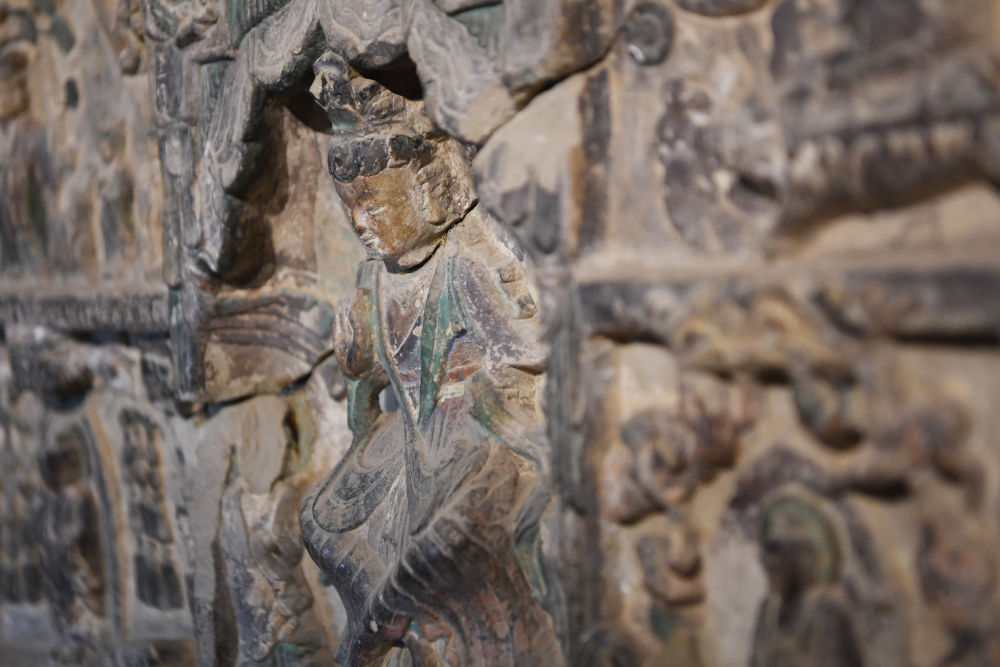 這是麥積山石窟第133窟內的造像碑局部(6月9日攝)。新華社記者 陳斌 攝