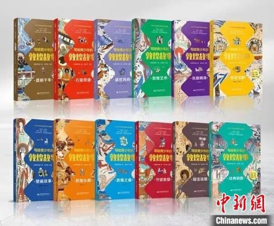 7月中旬,敦煌類通俗讀物《寫給青少年的敦煌故事》(共12冊)發(fā)行上市?!「拭C教育出版社供圖