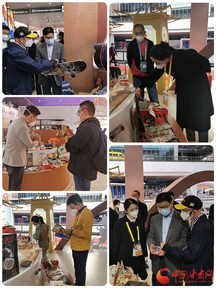 此次在酒泉展臺上展出的有極樂系列滑板、雙截棍、九色鹿系列胸針、手提包、伎樂天系列鑰匙扣、冰箱貼、飛天系列抱枕、書簽等,新潮的文創(chuàng)產(chǎn)品也拉近了敦煌文化與當(dāng)代人的距離,也吸引了眾多參展商和媒體記者駐足參觀和拍攝報道。