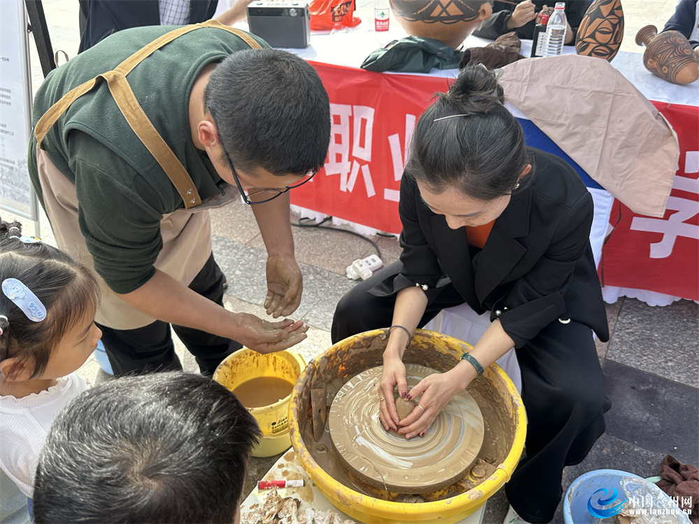 當(dāng)日的活動(dòng)中,蘭州職業(yè)技術(shù)學(xué)院非物質(zhì)文化遺產(chǎn)學(xué)院的師生現(xiàn)場(chǎng)展示蘭州刻葫蘆、慶陽(yáng)剪紙、木版年畫、甘南藏族唐卡、泥板畫、甘肅彩陶、掐絲琺瑯畫等非遺技藝,吸引了很多市民見(jiàn)此情景駐足觀看。其中甘肅彩陶展示尤為引人注目,不少市民上手體驗(yàn),在學(xué)院同學(xué)的幫助下體驗(yàn)非遺文化。市民張女士說(shuō):“這是我第一次體驗(yàn)制作甘肅彩陶,讓人印象非常深刻,了解了古人是如何制作彩陶的,也讓我'沉浸式'感受到非遺文化的魅力。”