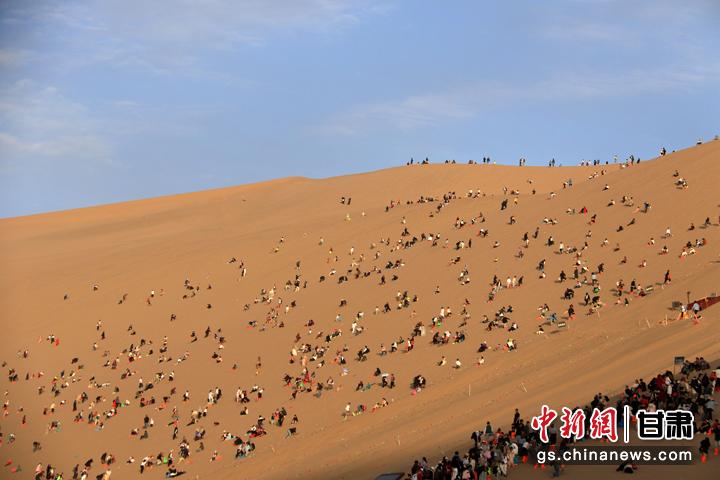 今年以來,甘肅省敦煌市旅游市場持續(xù)火熱。當地著名景點鳴沙山月牙泉在今年中秋國慶假期期間,累計接待游客首次突破300萬人次,比2019年同期增長35.5%,創(chuàng)歷史新高。(張曉亮 習剛)