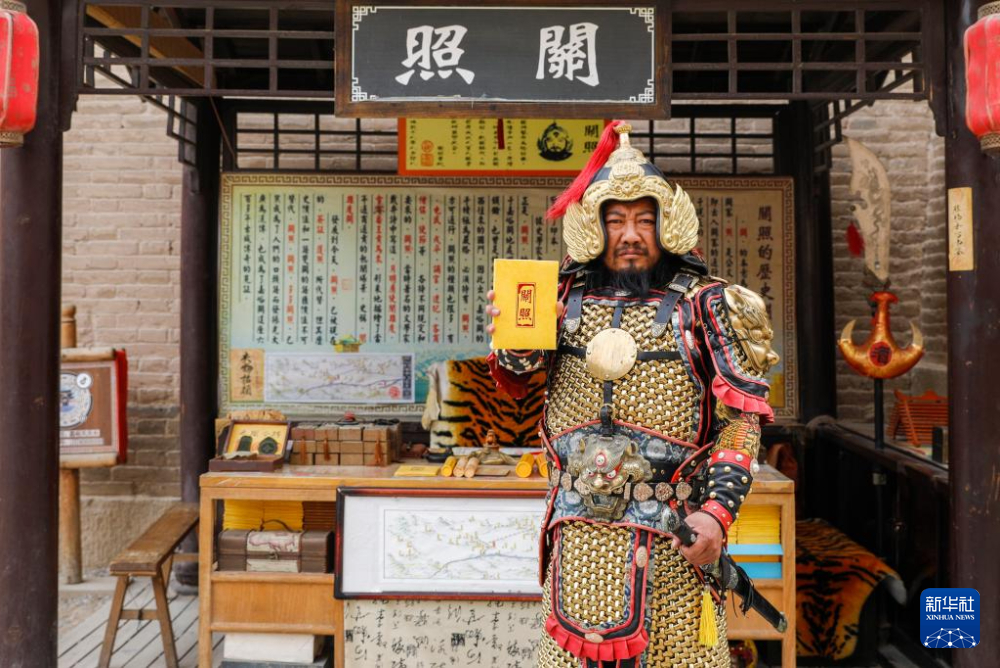 光頭絡腮胡的李森身披甲胄,在景區(qū)內扮演明朝嘉峪關最高軍事長官,為游客簽發(fā)文創(chuàng)產(chǎn)品“關照”(通關文牒)。自2001年起,他在嘉峪關“守關”20多年,親眼見證了嘉峪關旅游業(yè)的發(fā)展變化。