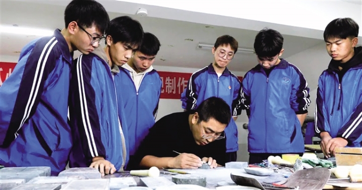 著眼于促進(jìn)洮硯產(chǎn)業(yè)長期健康發(fā)展,讓絕技不絕、人才不斷,瓜州縣突出分層培育,采用“工藝美術(shù)大師—鄉(xiāng)村工匠—培育對象”梯次培養(yǎng)模式,開展“鄉(xiāng)村工匠”教學(xué)指導(dǎo),為洮硯產(chǎn)業(yè)儲備好鄉(xiāng)村實用人才。通過校企合作方式,把“洮硯上的絲路文化非遺項目”引入瓜州冶金中等專業(yè)學(xué)校課堂,探索出非物質(zhì)文化遺產(chǎn)校園傳承的新模式。開展“大手牽小手,傳承洮硯非遺文化”活動,讓中小學(xué)生近距離感受洮硯雕刻中蘊含的豐富文化和精神內(nèi)涵,激發(fā)傳承優(yōu)秀民族文化的熱情。