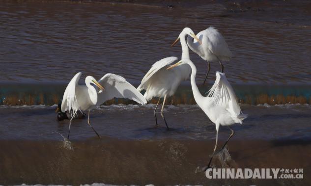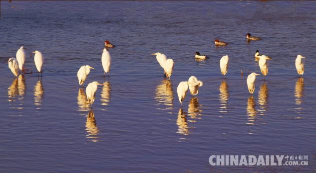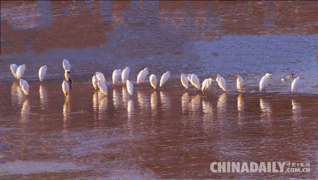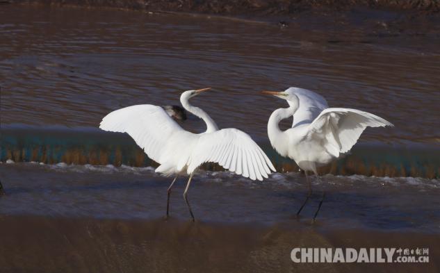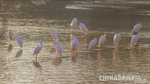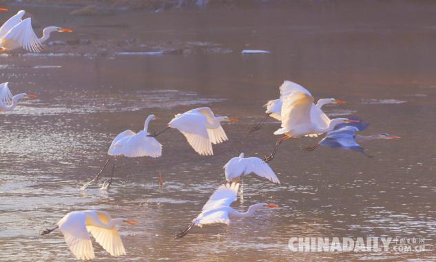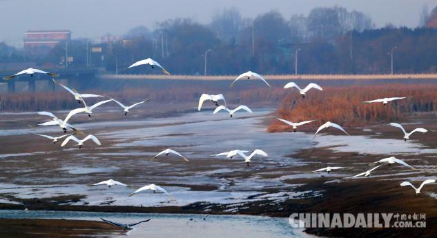 1月15日,數(shù)十只潔白的白鷺飛臨甘肅崇信城段的汭河,它們在此集結安家。