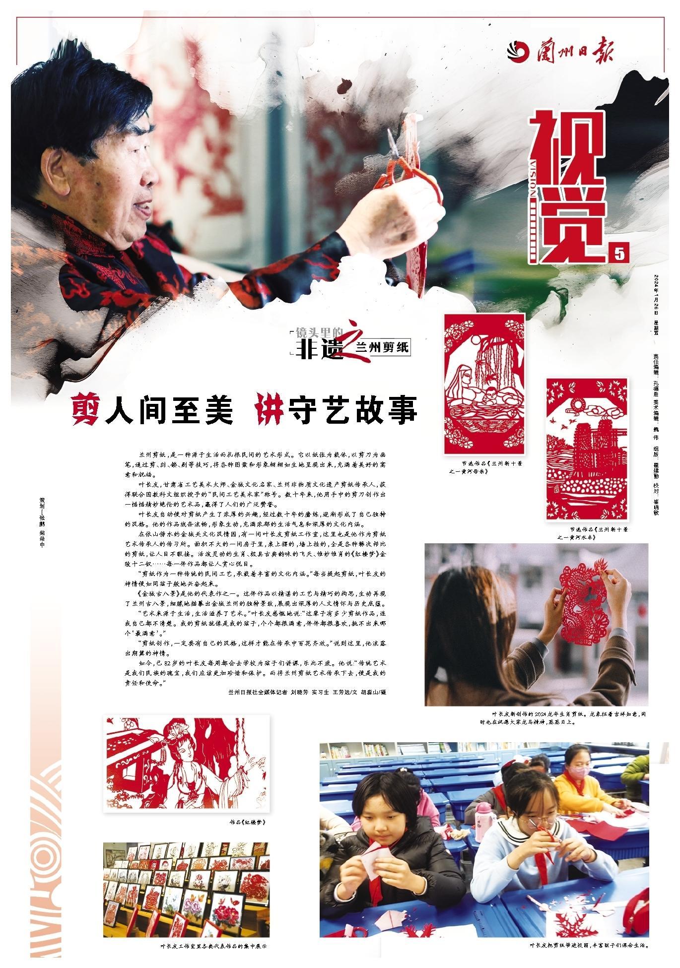 如今,已82歲的葉長友每周都會去學(xué)校為孩子們講課,樂此不疲。他說:“傳統(tǒng)藝術(shù)是我們民族的瑰寶,我們應(yīng)該更加珍惜和保護(hù)。而將蘭州剪紙藝術(shù)傳承下去,便是我的責(zé)任和使命。”