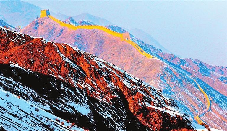 我國的長城與山自古相依相連,有的借山勢呈現(xiàn)出波瀾壯闊的畫面,有的和山體共同延伸向遠(yuǎn)處云端,蜿蜒不絕。
