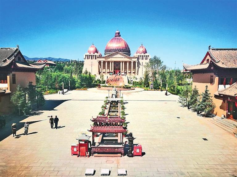 “驪靬古城”又被稱為“和平之城”。古城建在原古寺金山寺舊址上,城墻氣勢恢宏,東西南北各建門樓,四角各筑角樓。城內(nèi)建筑錯落布局,尤以外形具羅馬式建筑風(fēng)格的“萬神殿”最醒目,金色穹頂,羅馬石柱,刻有圖案,工藝精致,清新典雅。拾級上城墻,四周杏黃旗圍繞,迎風(fēng)獵獵。城東古羅馬廣場小巧玲瓏,別具一格;城南祁連山山巒相連,松柏林立;城西巍峨俊秀的胭脂山遙遙相對;城北建有幸福樂園。遠(yuǎn)眺,永昌縣城全貌一覽無余。