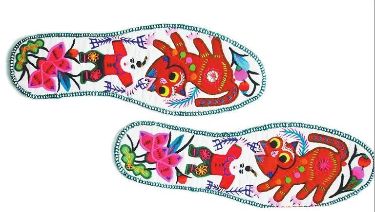 拼布與刺繡結(jié)合的鞋墊