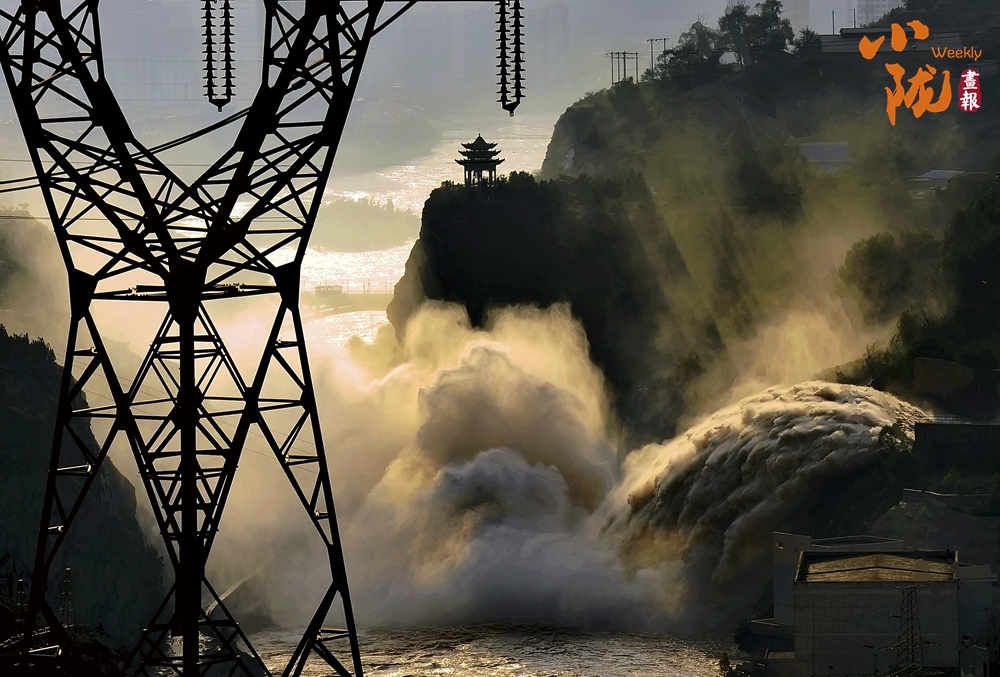 “奔騰泄水,何殊萬馬”。穿行萬里黃河水從100多米的溢洪道傾瀉而下、浪花飛濺、噴云吐霧、驚濤拍岸、似卷起千堆雪……