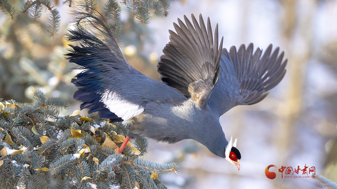 冬日里,藍(lán)馬雞成群飛落山腳覓食,藍(lán)羽丹頂行走在雪地格外搶眼。覓食時(shí),藍(lán)馬雞常用爪刨挖林中空地苔蘚和林緣草地,尋找掉落的云杉種子,刨食的過程會(huì)使土壤裸露出來,便于云杉種子生根發(fā)芽,促進(jìn)云杉林天然更新。
