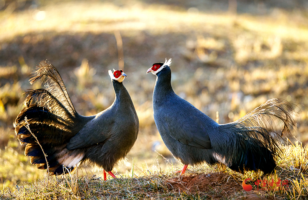 近日,祁連山國家公園甘肅省管理局張掖分局工作人員拍攝到國家二級(jí)保護(hù)野生動(dòng)物藍(lán)馬雞覓食嬉戲場景。