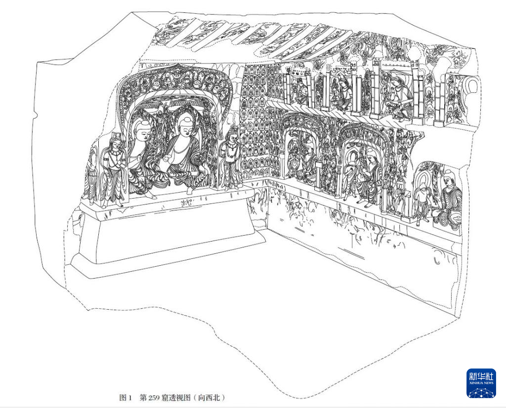 《莫高窟第256、257、259 窟考古報告》中第259窟透視圖。敦煌研究院供圖
