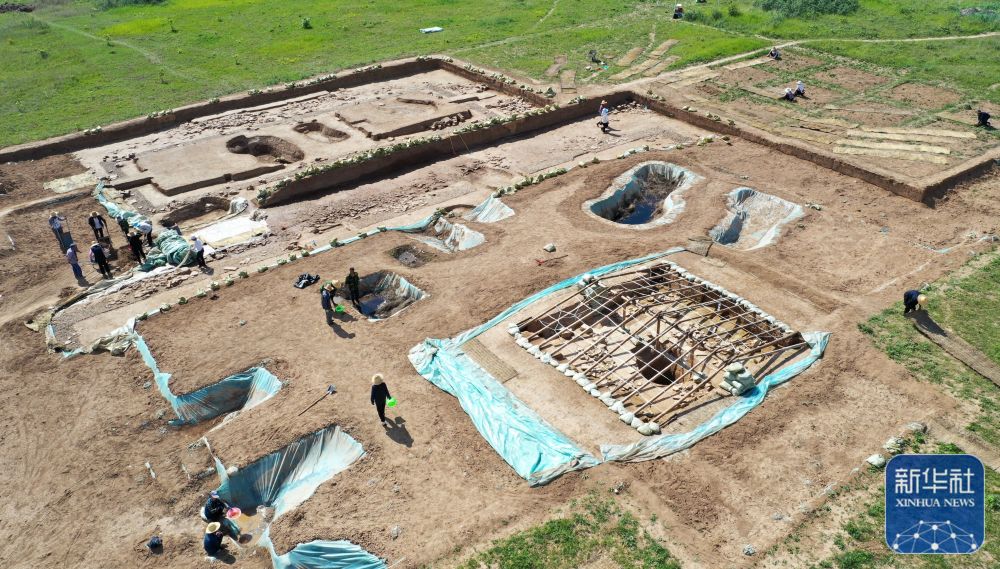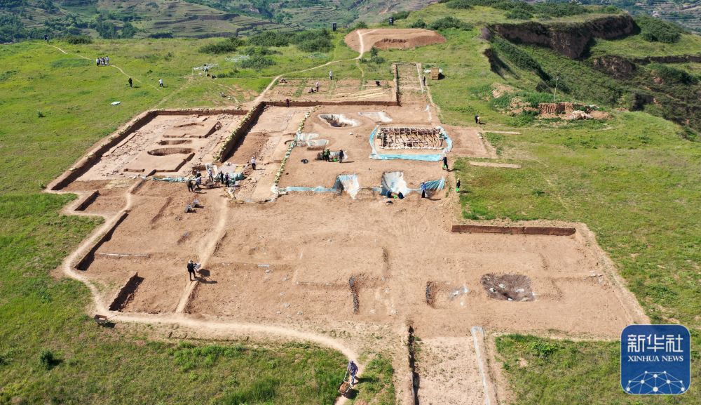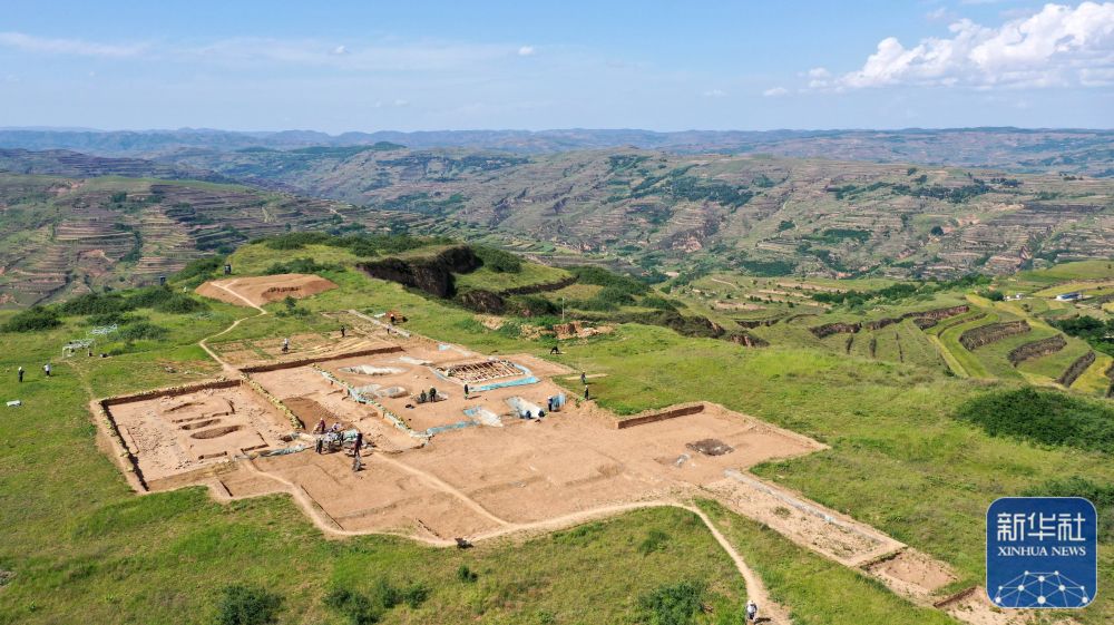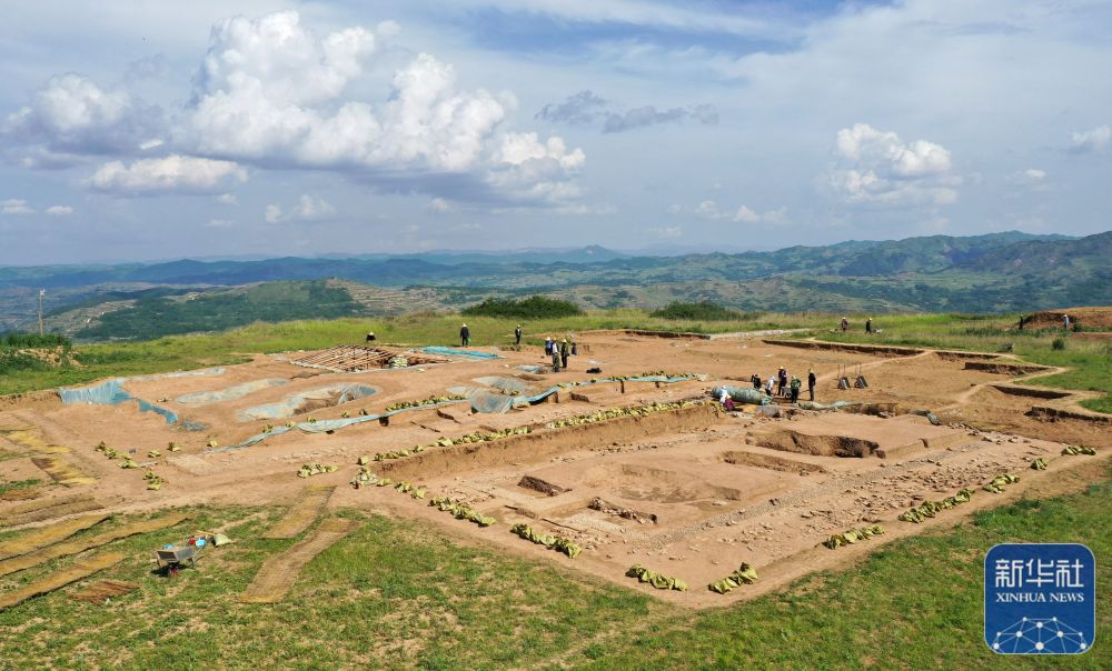 這是2022年6月10日拍攝的甘肅省隴南市禮縣四角坪遺址考古發(fā)掘現(xiàn)場(無人機(jī)照片)。新華社記者 郎兵兵 攝