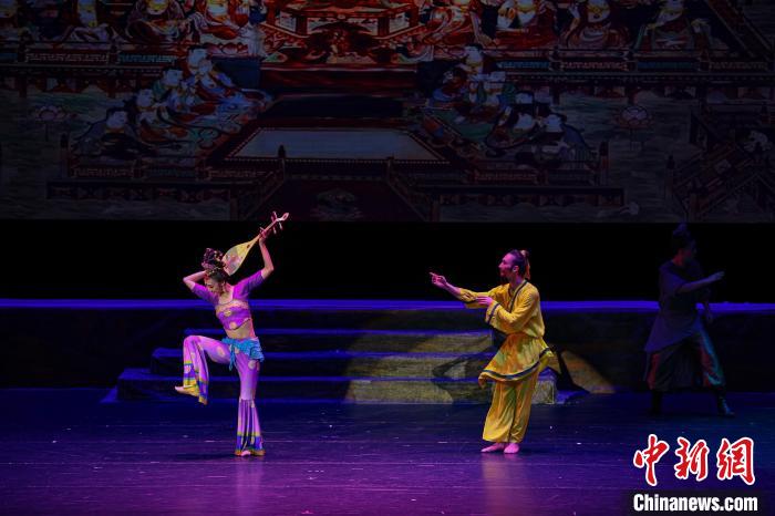 2023年4月17日晚,中國經(jīng)典舞劇《絲路花雨》在澳門百老匯劇場演出。(資料圖)甘肅演藝集團(tuán)供圖