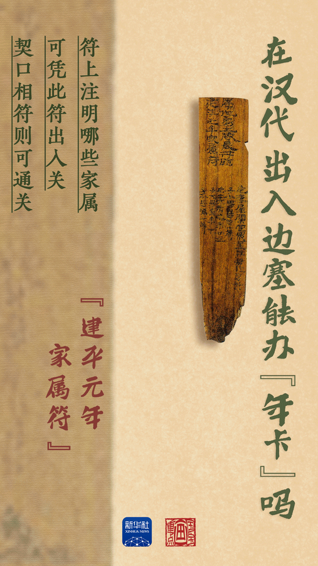 在漢代邊塞,官府制作兩份刻有契口的出入關(guān)符,一份放在關(guān)口,一份由個(gè)人執(zhí)有。個(gè)人執(zhí)符出入關(guān)時(shí)由官吏核驗(yàn)契口是否相符,合則通關(guān)。這個(gè)程序稱(chēng)之為“合符”,這也是“符合”一詞較早的來(lái)源。這種關(guān)符有按月或按年制作、使用之分,好似今天人們?cè)诟鞣N場(chǎng)合使用的“月卡”和“年卡”。