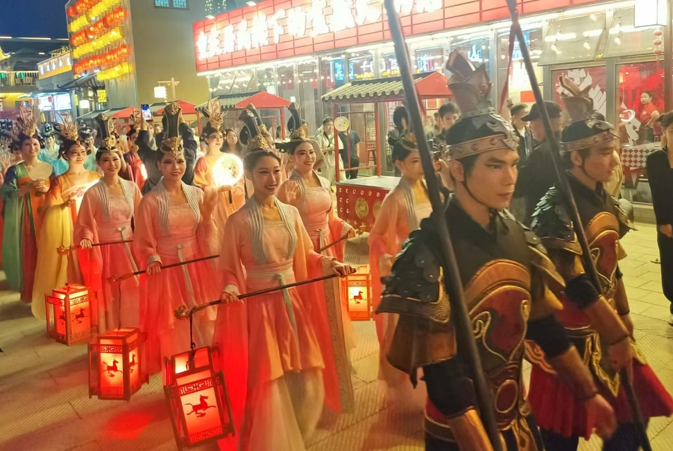 在漢唐天馬城西涼大劇院,大型沉浸式情景舞臺(tái)劇《天馬行》,用美輪美奐的舞美場(chǎng)面再現(xiàn)漢文化歷史,講述涼州的千年風(fēng)華,帶領(lǐng)觀眾進(jìn)行一次古今穿越之旅。