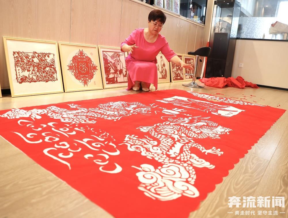 一把小巧的剪刀、一件裁好的紅布,折線與剪線交錯(cuò),刀鋒沙沙在紅布上游走……為獻(xiàn)禮2024(甲辰)年公祭中華人文始祖伏羲大典,天水市秦州區(qū)區(qū)級(jí)玉雕技藝非遺傳承人、剪紙傳承人尹麗珺,歷時(shí)半個(gè)月制作完成了長(zhǎng)2.5米、寬1.5米的大型“龍鳳呈祥”龍圖漢服剪紙服裝,“這是一份獻(xiàn)禮,也是對(duì)伏羲文化的另一種傳承。”