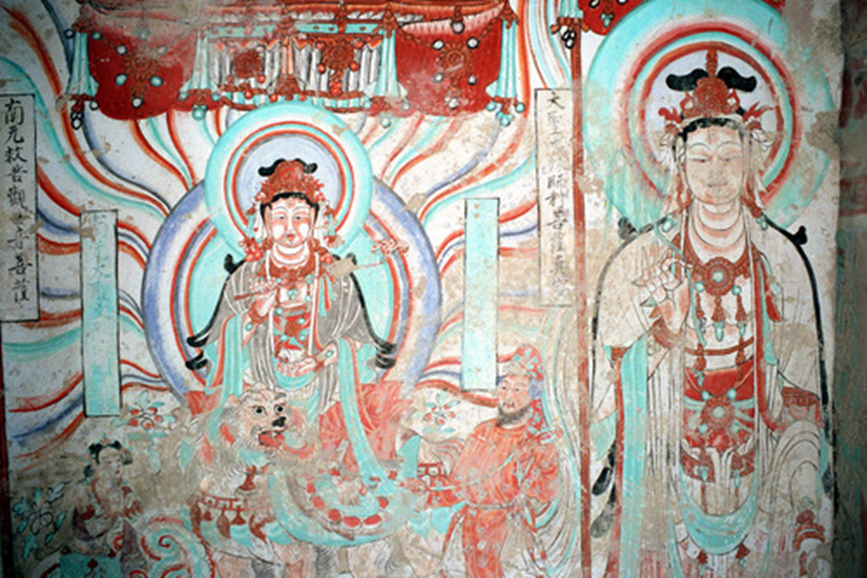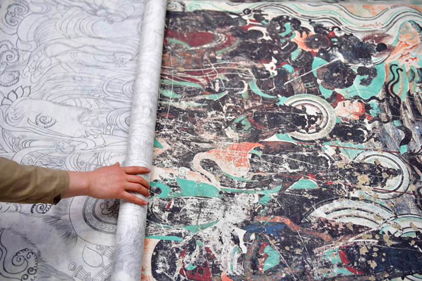1989年年初,中國(guó)敦煌莫高窟465號(hào)窟內(nèi)的五處元代壁畫(huà)被盜。破案后,敦煌研究院立即組織有關(guān)專家將這些支離破碎的壁畫(huà)拼接粘合,以高超的技藝復(fù)原,然后按照?qǐng)D片檔案資料進(jìn)行描繪,使它們基本上恢復(fù)了被盜之前的本來(lái)面貌。