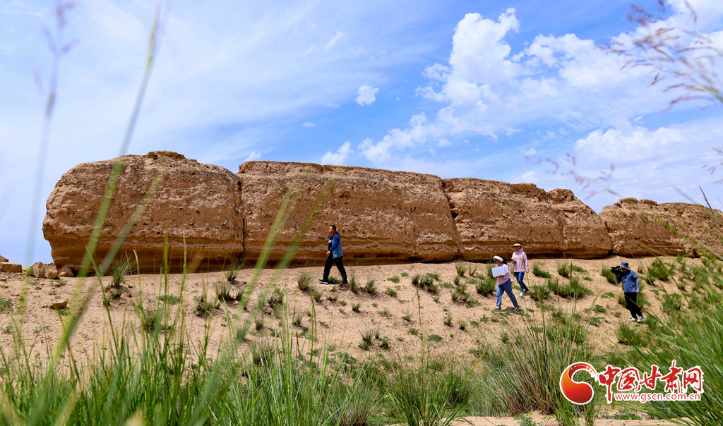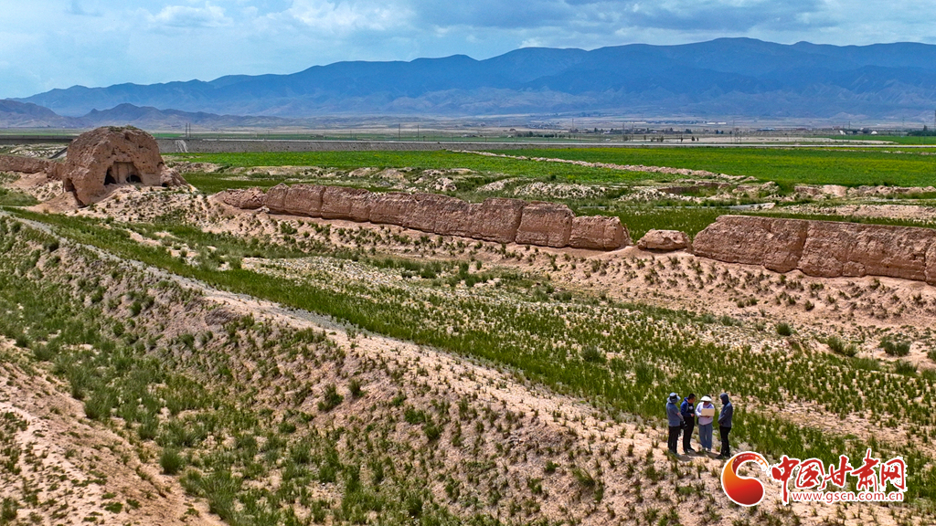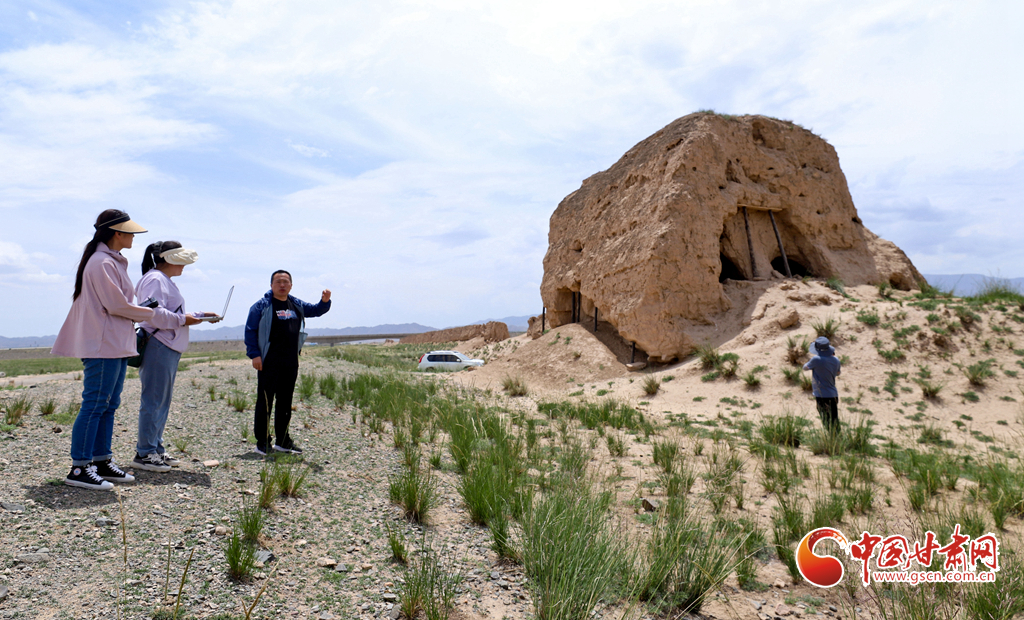 6月27日,甘肅省張掖市山丹縣漢明長城保護研究中心工作人員正在峽口古城段進行現(xiàn)場勘察和數(shù)據(jù)采集。