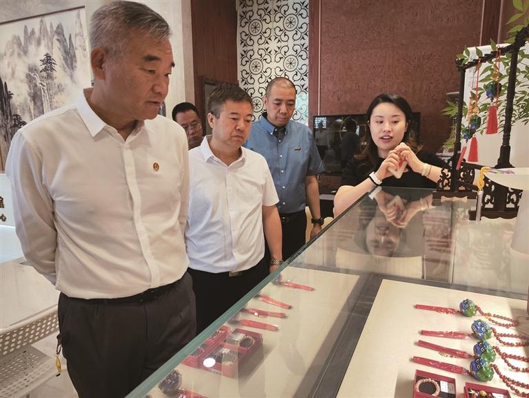 調(diào)研組興致勃勃地參觀了蘭州市博物館數(shù)字文創(chuàng)中心,并對(duì)蘭州市博物館今年的爆款文創(chuàng)“蘭小五”產(chǎn)生了極大興趣。在工作人員的演示下,通過(guò)手機(jī)掃描,“蘭小五”活靈活現(xiàn)地呈現(xiàn)在觀眾眼前,這令調(diào)研組感到非常有趣。調(diào)研組一致認(rèn)為,“蘭小五”的打造十分成功,生動(dòng)彰顯了蘭州市博物館在文物保護(hù)利用方面所做的努力和大膽嘗試,希望在文創(chuàng)產(chǎn)品的打造上進(jìn)一步大膽創(chuàng)新,讓更多的文物“活起來(lái)”,更好地弘揚(yáng)傳播歷史文化。