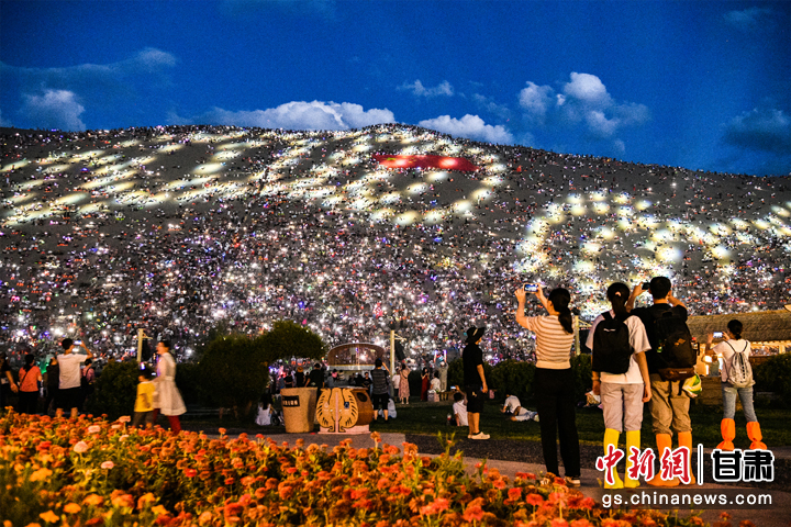 盛夏7月,每當(dāng)夜幕降臨后,甘肅省敦煌市鳴沙山月牙泉景區(qū)被精心布置的燈光點亮,上萬名游客手機(jī)的燈光與天空中的繁星交相輝映,營造出一種夢幻般的浪漫氛圍。