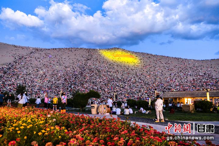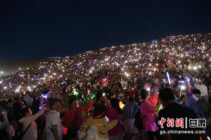 圖為敦煌鳴沙山上,上萬名游客靜待萬人星空演唱會開幕。王斌銀 攝