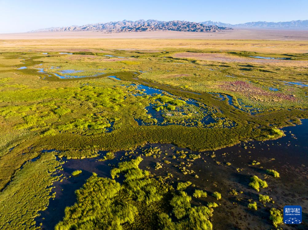 7月31日拍攝的大蘇干湖濕地景色(無人機(jī)照片)。新華社發(fā)(高宏善 攝)