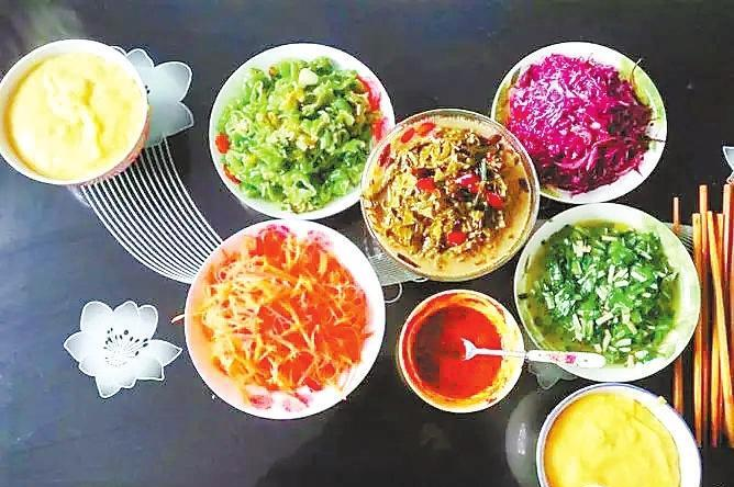 百人百心病,百人百口味。現(xiàn)在的人吃馓飯,對菜品的要求越來越高了,除了酸菜,人們大多還會調(diào)一些涼菜,或炒一些菜,蘿卜的,肉丁的,山野菜的,虎皮辣子的,滿滿地?cái)[上一桌子,如錦上添花,令人食欲大增。