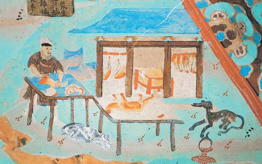 提起西北的美食,就少不了肥美牛羊肉。畜牧業(yè)發(fā)達的敦煌,這些優(yōu)質(zhì)的肉類絕不會斷貨。莫高窟第61窟、第85窟、第156窟等,都出現(xiàn)了“肉鋪”的場面。