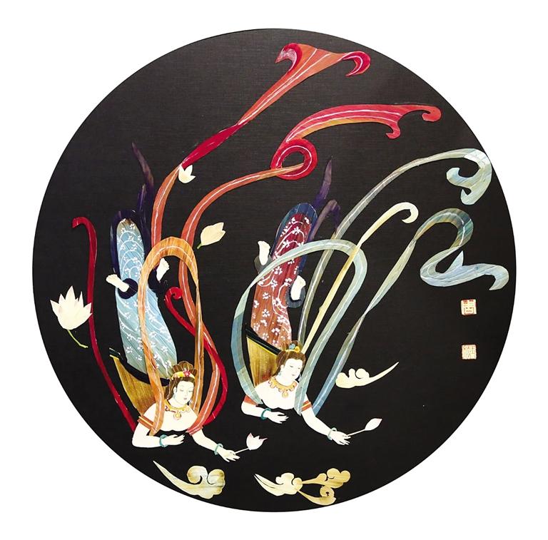 周玉梅曾經(jīng)說過,“如果我的生命里沒有了剪紙、繪畫這些東西,我的靈魂也將變得枯萎。”憑借著對繪畫的熱愛,她的麥稈畫作品幾乎達到了爐火純青惟妙惟肖的程度。在展覽現(xiàn)場,她的《親情系列之骨肉情深》麥稈作品呈現(xiàn)的是兩只老虎,幼虎憨態(tài)可掬,雌虎一改威嚴姿態(tài),舐犢情深的“老母親”形象活靈活現(xiàn)。在她親情系列的畫作中,無論是羔羊、奔馬、老黃牛等動物皮毛部分皆用細如針尖的麥稈粘貼而成,一幅畫作成千上萬根麥稈不僅考驗著作者的功力,更考驗著作者的耐力。作為甘肅山丹人,畫敦煌飛天是每一個甘肅人的情懷。因此,她創(chuàng)作的《飛天》畫作中,飛天身著彩色飄帶在空中飄逸飛舞,而這正是周玉梅畢生追求的藝術(shù)境界。