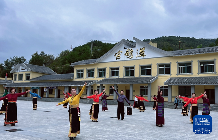 在官鵝溝大景區(qū),伴隨著當(dāng)?shù)卦瓌?chuàng)旅游歌曲《娥嫚》的旋律,游客們和身著民族服飾的表演者在山水之間載歌載舞,現(xiàn)場不時響起陣陣掌聲和歡呼聲。“如詩如畫的美景,獨具魅力的民族文化,歌舞聲把節(jié)日氣氛拉滿。”周敏說。