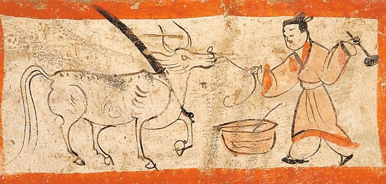椎牛圖畫(huà)像磚