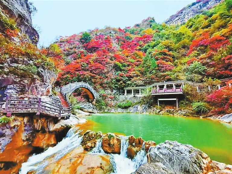 不知不覺間,人字瀑、德惠橋、躬身巖、懷耿廳……從身邊一一閃過。那片“光怪靈潭氣欲吞,波平浪靜一輪存。鏡連五色龍成彩,珠映千鱗月映痕”的詩情畫意在秋風微雨里,牽手一池淡墨,勾勒一幅秋景,伴著略帶寒氣的紅葉飄飄欲仙,和我一道用溫婉靜謐的心靈感受西狹的體溫,共賞一片秋色,共聽一場秋風。