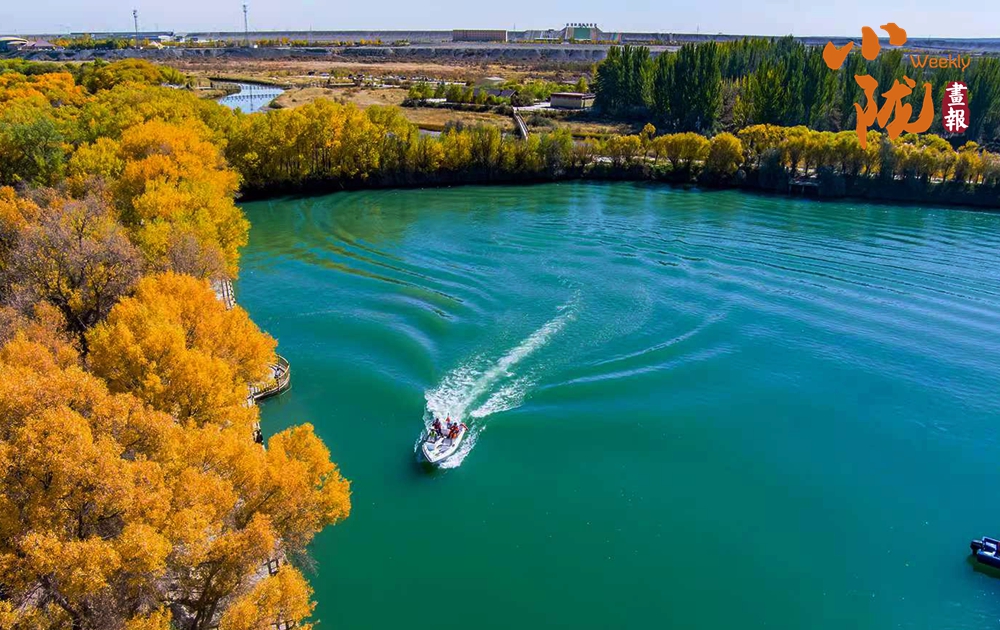 金胡楊、湖泊、河流、戈壁與藍(lán)天構(gòu)成了一幅壯美的畫(huà)卷,吸引了各地慕名而來(lái)的游客。