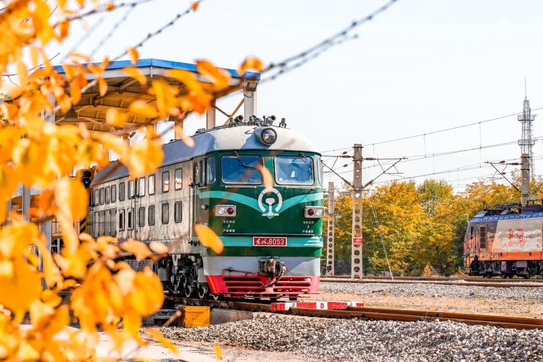 秋日的叢林,如同萬(wàn)道金光,列車(chē)緩行其間構(gòu)成一幅幅溫暖的畫(huà)面。陽(yáng)光灑在列車(chē)上閃爍著金屬特有的光澤,與周?chē)纳式豢椩谝黄?,每一張美的都像壁紙?/p>