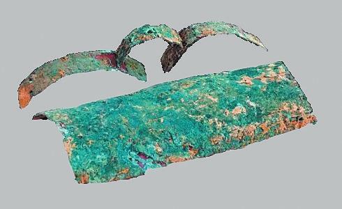 冶金業(yè):辛店文化遺址發(fā)現(xiàn)了一定數(shù)量的早期青銅制品。其中在蓮花臺遺址瓦渣咀發(fā)現(xiàn)青銅刀2件、錐2件、扣3件。其中一件青銅刀刀身扁薄,凹背弧刃,長殘4.5厘米、寬1.5厘米;青銅錐錐身挺直,橫剖面呈方形,其中一件殘長5.2厘米;青銅扣球面或凸面,扣內(nèi)有脊,脊的橫剖面作圓形或方形,直徑一般在1.4厘米—1.6厘米之間。在黑頭咀發(fā)現(xiàn)1件銅刀和1件銅匕,其中銅刀保存完整,刀身向刃部彎曲,刀尖往上翹,柄部有一凸棱,長15厘米、寬2.7厘米。張家咀遺址發(fā)現(xiàn)1件青銅器殘片,系為銅容器口腹部殘片,侈口,弧壁,口沿厚0.4厘米。青銅矛一件,矛身略呈三角形,前鋒已殘,銎作長方形,殘長3厘米、銎長1.8厘米、寬0.7厘米。發(fā)現(xiàn)銅渣2塊,經(jīng)鑒定確認銅渣為冶煉青銅爐內(nèi)壁殘塊,附在冶煉爐內(nèi)的銅渣長6.5厘米、寬3.5厘米、厚1.1厘米。經(jīng)過巖相、光譜分析,銅渣是含有銅、錫、鉛的青銅金屬合金,反映出辛店文化不僅存在青銅器,并且已經(jīng)掌握了冶金技術。