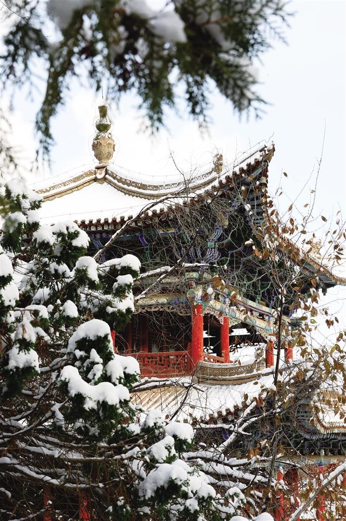 11月25日,雪后的蘭州五泉山公園銀裝素裹,迷人雪景如畫。古老亭臺(tái)樓閣紅墻玉頂、參天古樹玉樹瓊枝,宛如大地書寫的一幅“水墨丹青”,美不勝收,游客紛至沓來,賞雪、拍照,盡情享受清爽的空氣和潔白的美景。 奔流新聞·蘭州晨報(bào)記者 裴強(qiáng) 攝