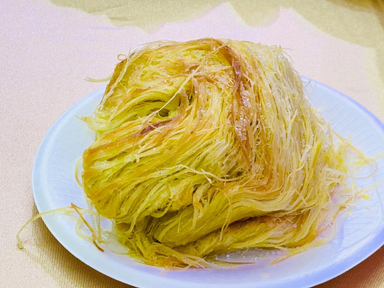 一窩絲的制作是一門(mén)精細(xì)的藝術(shù)。面粉、水、鹽和油巧妙混合,揉成光滑面團(tuán)后,反復(fù)地拉伸、對(duì)折,直至那面團(tuán)細(xì)如發(fā)絲,再盤(pán)成一團(tuán)放入烤箱中,逐漸變得金黃酥脆。吃起來(lái),那口感是層層疊疊的酥,帶著淡淡的油香,每一根絲在齒間斷裂,釋放出獨(dú)特的風(fēng)味。