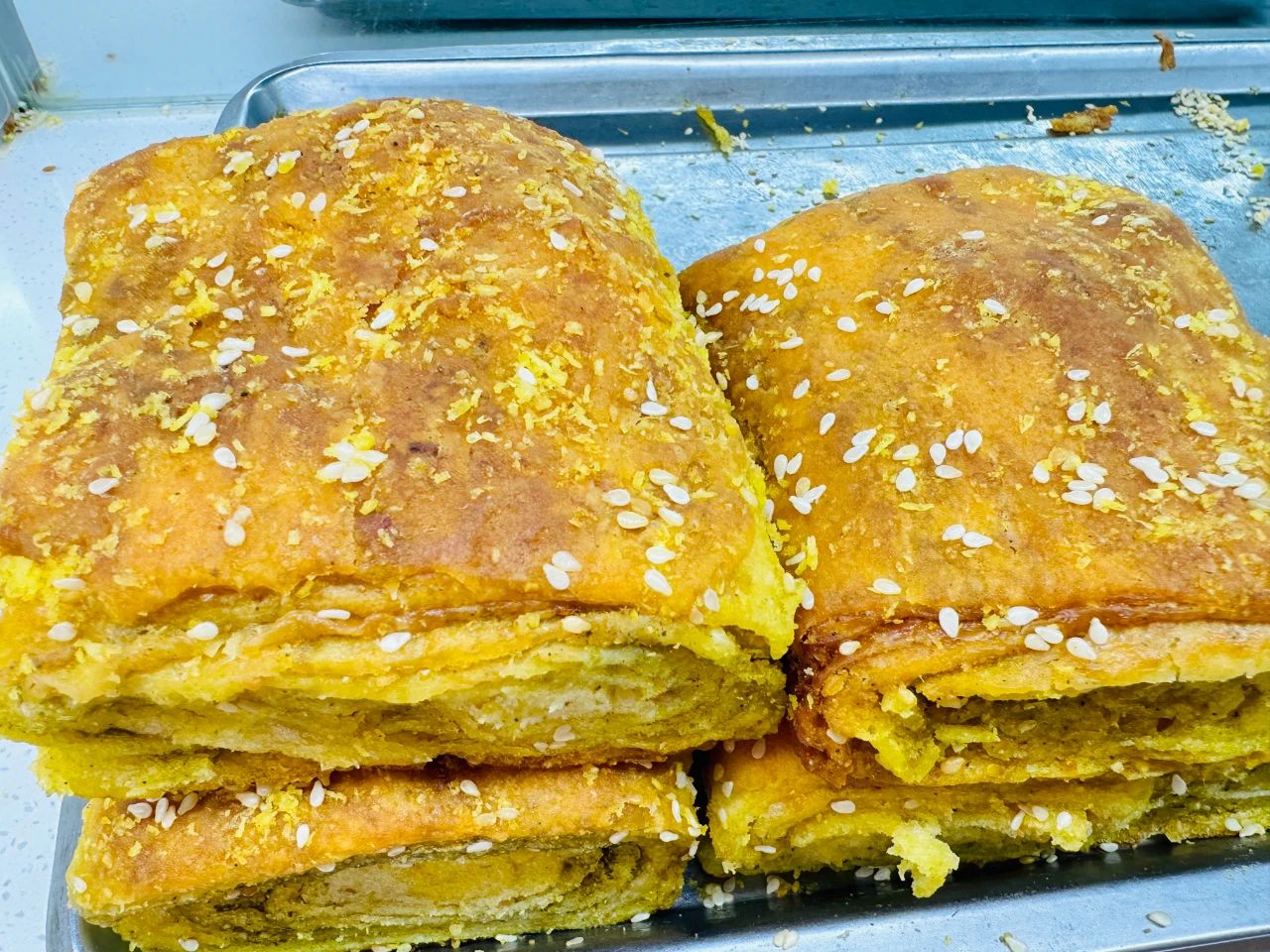 鍋盔則彰顯著力量與耐心。面團(tuán)經(jīng)過(guò)反復(fù)多次大力地揉壓,直到堅(jiān)韌而有彈性。接著,將面團(tuán)搟成大大的圓餅,厚度可觀。在特制的爐中慢慢烤制,使其外皮變得金黃硬實(shí),而內(nèi)部依舊保持著柔韌。咬一口,是滿滿的厚實(shí)感。麥香在咀嚼中愈發(fā)濃郁,就像西北大地般質(zhì)樸醇厚。